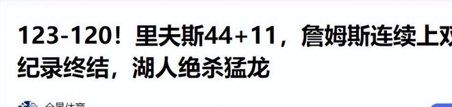 通过数据分析本场比赛里夫斯轰下了44分5板10助5失误,虽然三分的命中率只有一半的几率。