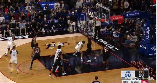 比赛还剩下19秒时,勇士发动进攻。裁判报告指出,76人后卫马克西在身边没有明确防守人的情况下在禁区待的时间过长,应该吹罚防守三秒违例,勇士得到一次罚球机会。